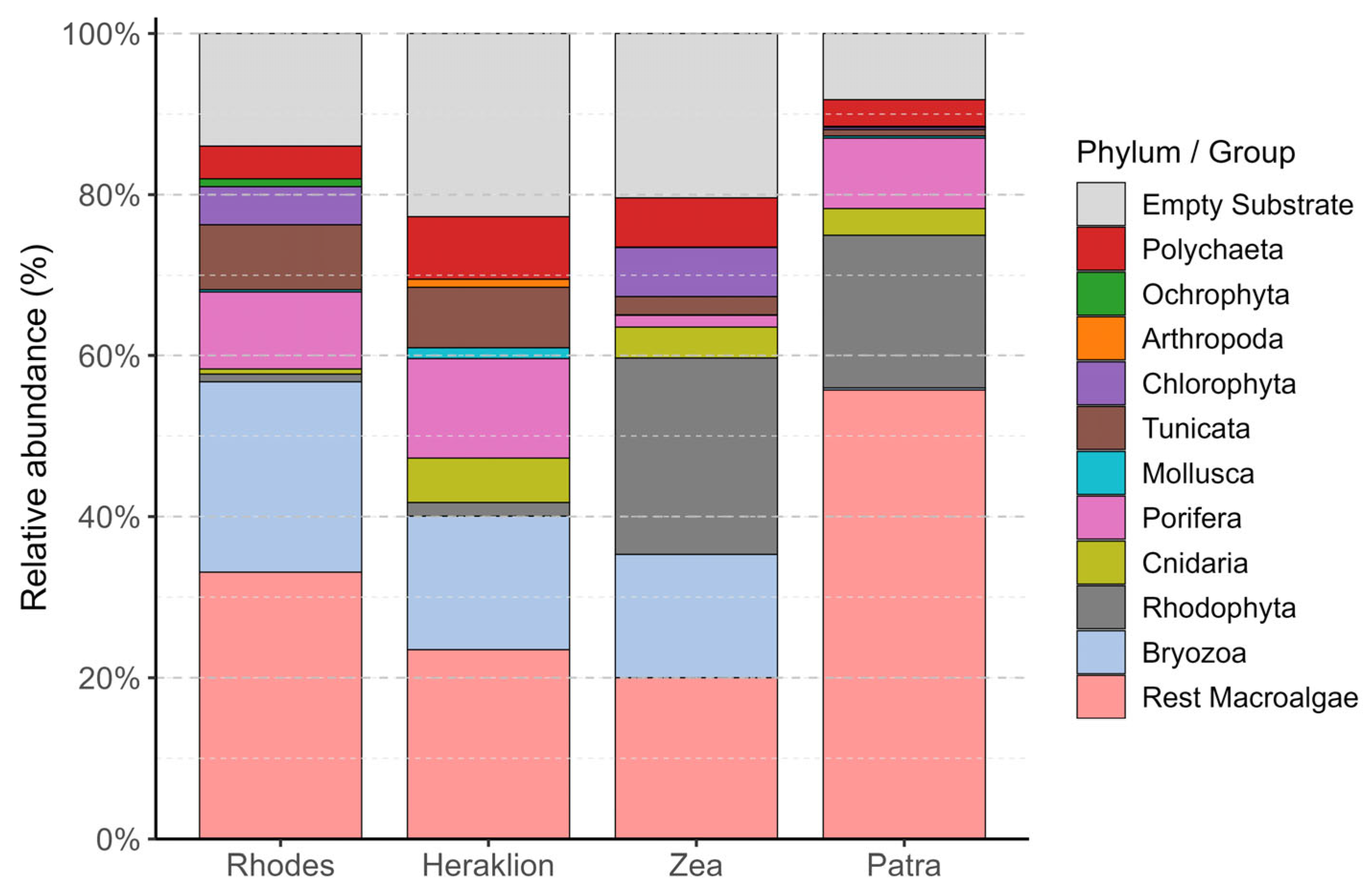- Bacchiocchi, F.; Airoldi, L. Distribution and dynamics of epibiota on hard structures for coastal protection. Estuar. Coast. Shelf Sci. 2003, 56, 1157–1166. [Google Scholar] [CrossRef]