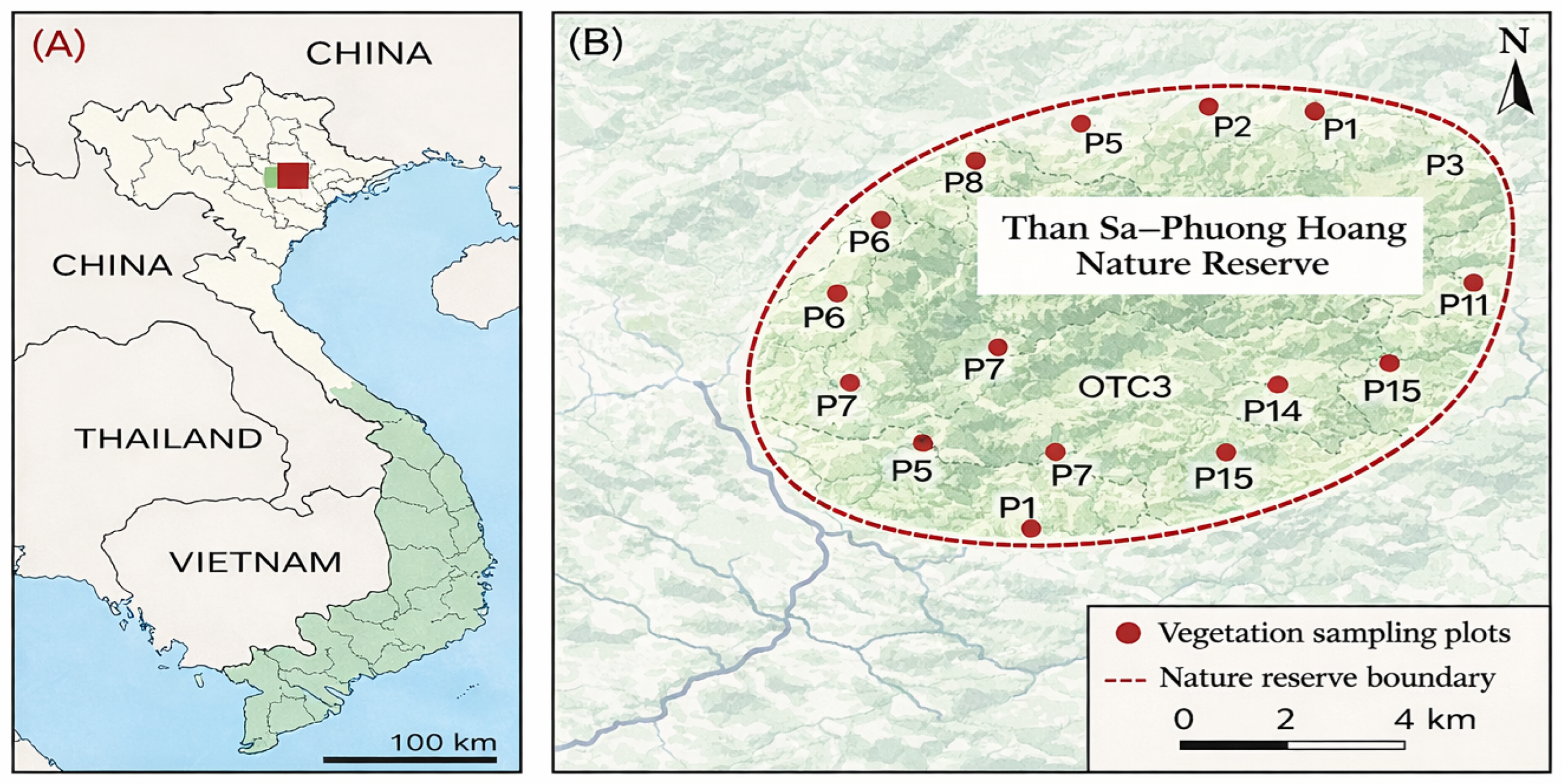 APA StyleDang, T. T. H., Hoang, V. H., Nguyen, C. H., & Do, V. H. (2026). Diversity Conservation Status, and Ecological Characteristics of Endangered Plant Species in Than Sa–Phuong Hoang Nature Reserve, Thai Nguyen Province, Vietnam. Diversity, 18(4), 228. https://doi.org/10.3390/d18040228