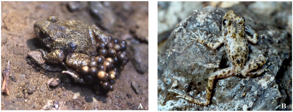- Márquez, R. Sapo partero ibérico –Alytes cisternasii. Enciclopedia Virtual de los Vertebrados Españoles; Salvador, A., Ed.; Museo Nacional de Ciencias Naturales: Madrid, Spain, 2011. Available online: http://www.vertebradosibericos.org/ (accessed on 12 September 2012).