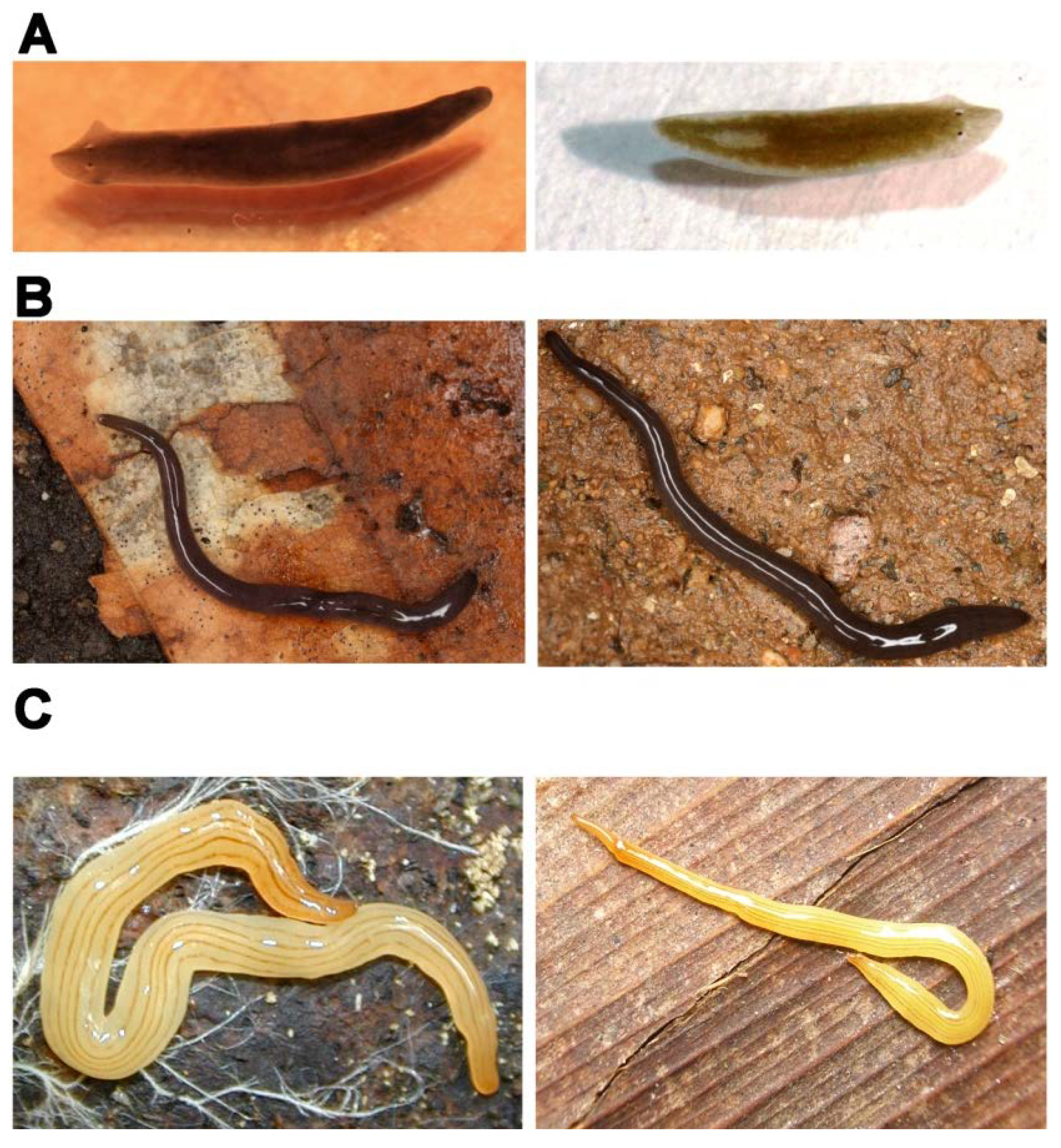 - Álvarez-Presas, M.; Baguñà, J.; Riutort, M. Molecular phylogeny of land and freshwater planarians (Tricladida, Platyhelminthes): From freshwater to land and back. Mol. Phylogenet. Evol. 2008, 47, 555–568. [Google Scholar] [CrossRef]