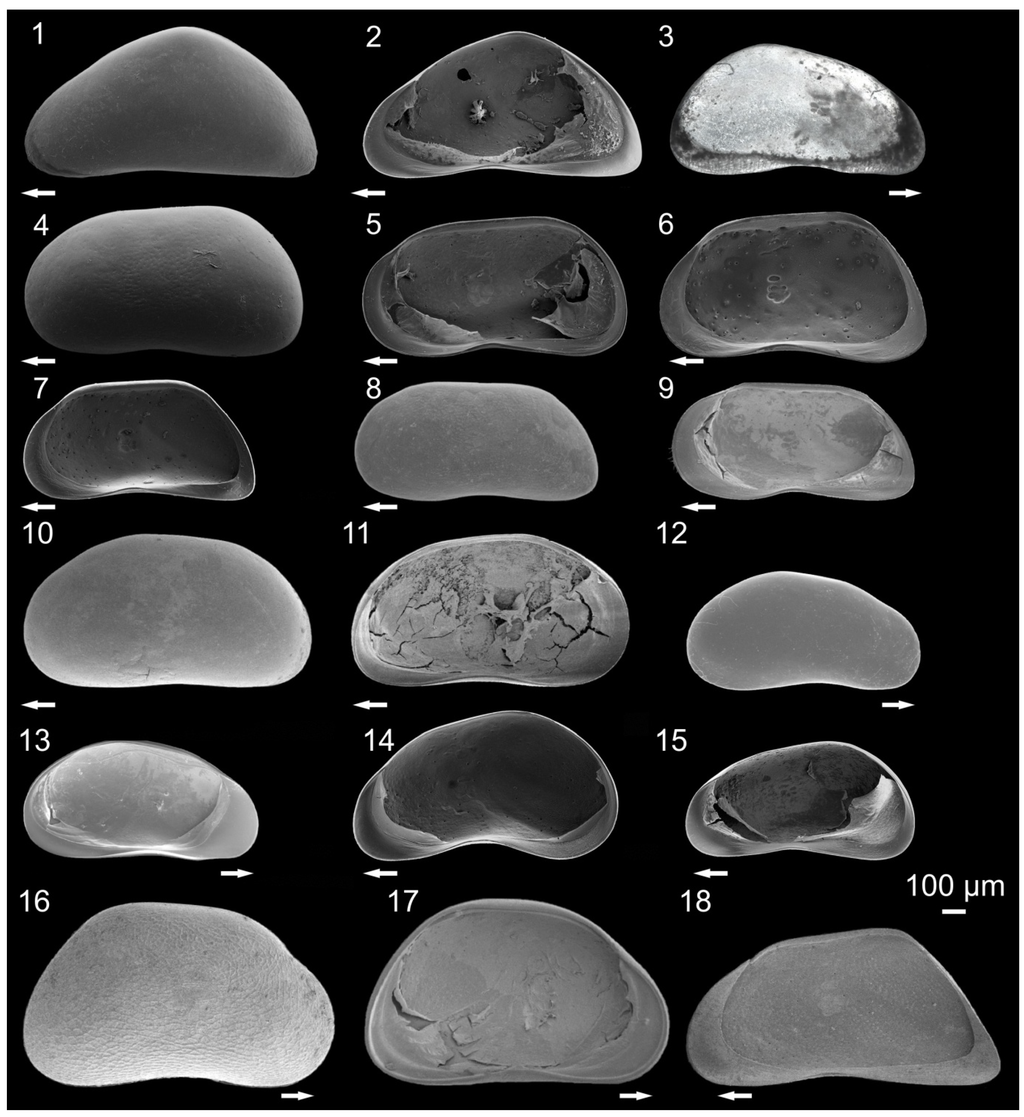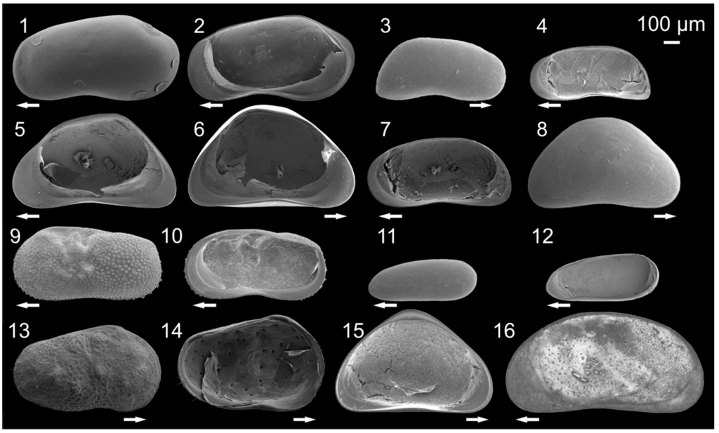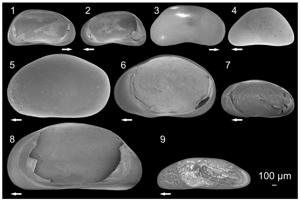 - Karanovic, I. Recent Freshwater Ostracods of the World. Crustacea, Ostracoda, Podocopida; Springer: Berlin, Germany, 2012; p. 608. [Google Scholar]
