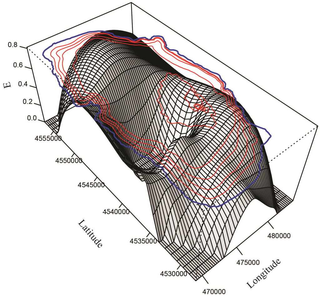 Spatially modeled species evenness (E) in Lake Ohrid.