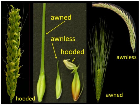 - Pourkheirandish, M.; Hensel, G.; Kilian, B.; Kumlehn, J.; Sato, K.; Komatsuda, T. Evolution of the Grain Dispersal System in Barley. Cell 2015, 162, 527–539. [Google Scholar] [CrossRef] [PubMed]