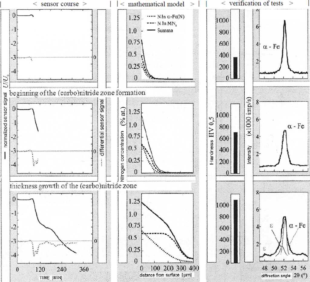 The unique value of the operation systems is constituted by the possibility to monitor the growth of the nitrided layer on all its development stages as a result of a complementary combination of the indications of the sensor with mathematical models.