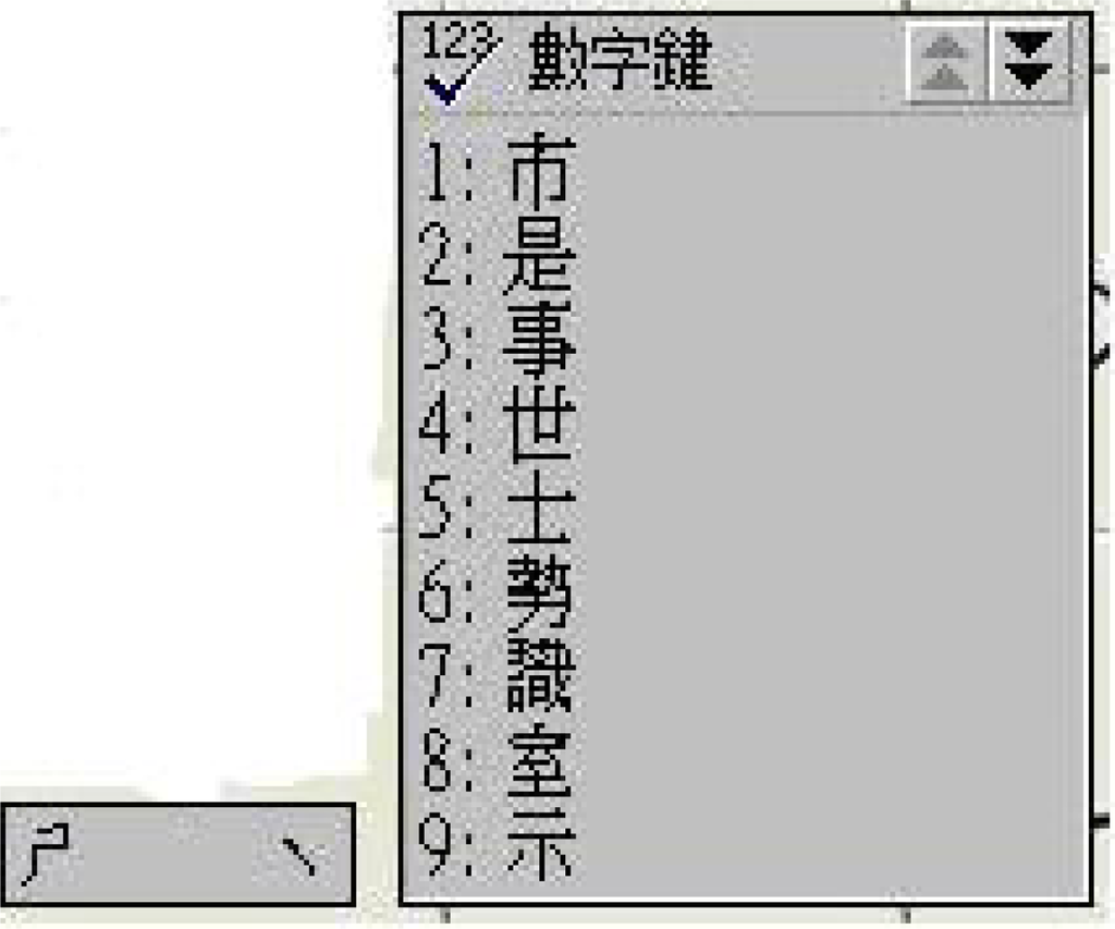 , the system will list all the homophones on an associated menu, as illustrated in Figure 5. The user then uses components 1 to 9 to choose the correct word. Component 10 works for “Page down” by turning to the next page when the homophones span more than one page. Component 11 is used to ‘Confirm the choice’ as before. The number keys on the Chinese keyboard are for continuous digit input, for example, telephone number.