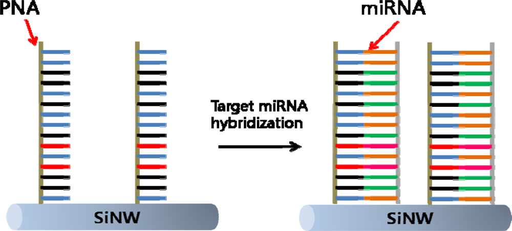 Target miRNA detection via PNA functionalized SiNW.