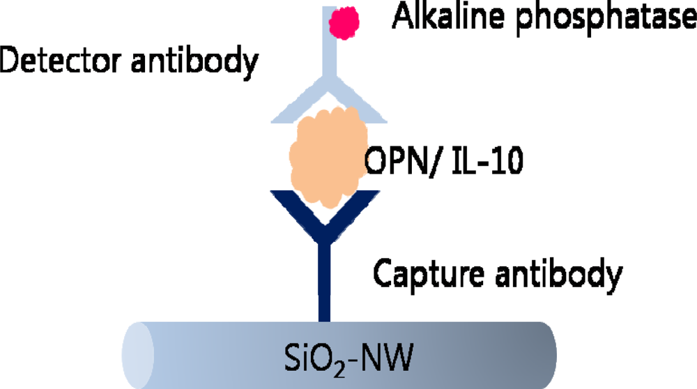 Detection of cancer biomarker through sandwich immunoassay using SiO2-NW.