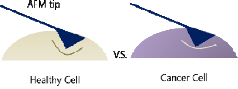 Healthy cell and cancer cell differs in stiffness.