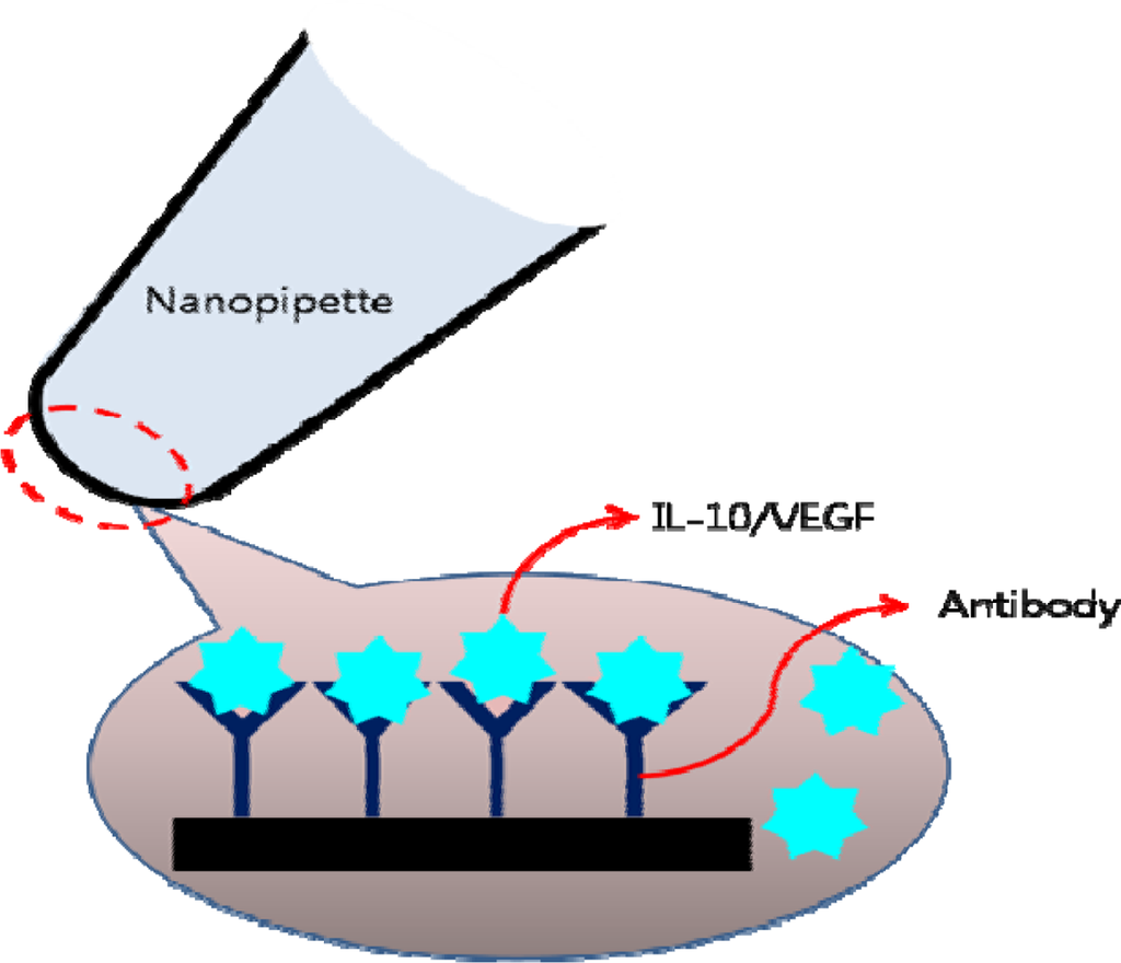 Nanopipette detecting IL-10 or VEGF.