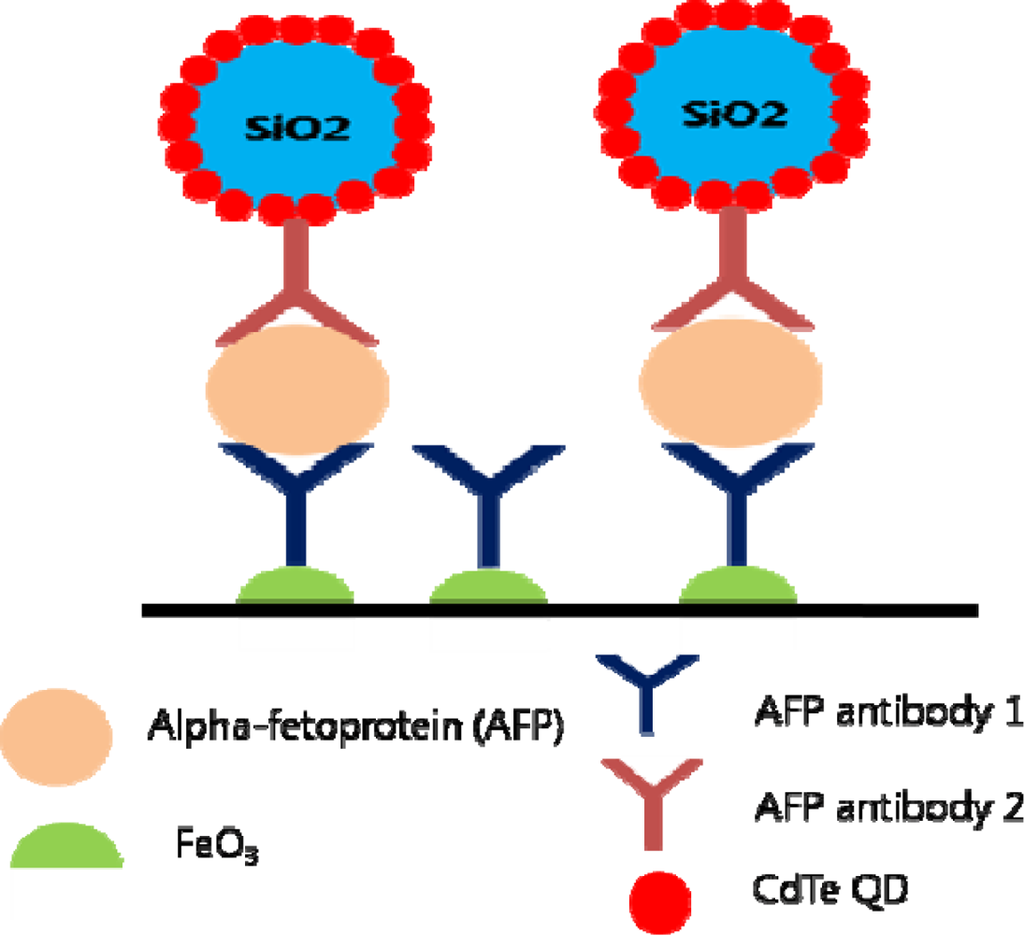 QDs can be used as signal amplifying agents in ultrasensitive cancer biomarker detection []. A recent study has been conducted with QD functionalized nanoparticles in immunoassays, targeting alpha-fetoproteins (AFPs) []. CdTe QDs have been coated on SiO2 particles and through anodic stripping voltammograms, the Si/QD/antibody showed increased oxidation current of Cd2+ proving its signal amplifying ability. Increased amount of QDs per biomarker make the detection more sensitive, thus enabling detection even at low concentration (Figure 6).
