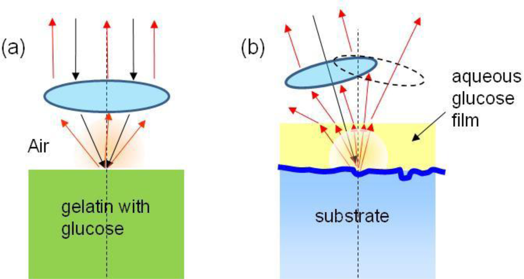 Consider the case of scattering illustrated in Figure 11(b), but with the generalization for any solvent with a small contamination. Let the film have a known dielectric function εf(λ), which is altered to become εf(λ;CX) because of some contaminant X, and CX is its concentration. It is expected that |[εf(λ;CX)–εf(λ)]/εf(λ)| is small, such as ∼10−3 for glucose in Section 6.2 and even smaller in other cases. The question is what is the physical basis for the contamination to be detected and quantified via elastic scattering? In other words, how does CX manifest itself in the scattered light, and how does one detect and quantify CX.