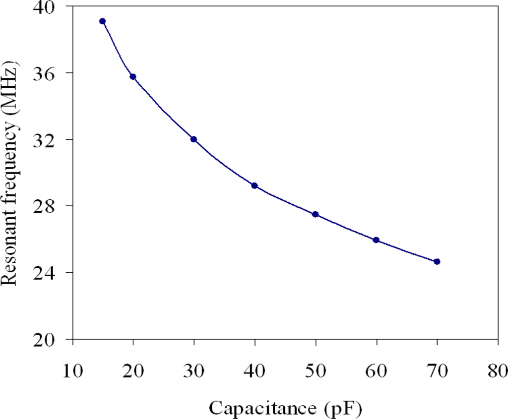 The professional circuit simulation software, HSPICE, was used to analyze the characteristics of the ring oscillator circuit. Figure 4 presents the simulated results of the five-stage ring oscillator circuit. In the simulation, the load capacitance is 2 pF, and the humidity sensor capacitance varies from 15 to 70 pF. The oscillation frequency of the ring oscillator circuit varies from 39.2 to 24.6 MHz as the capacitance of the humidity sensor rises from 15 to 70 pF.