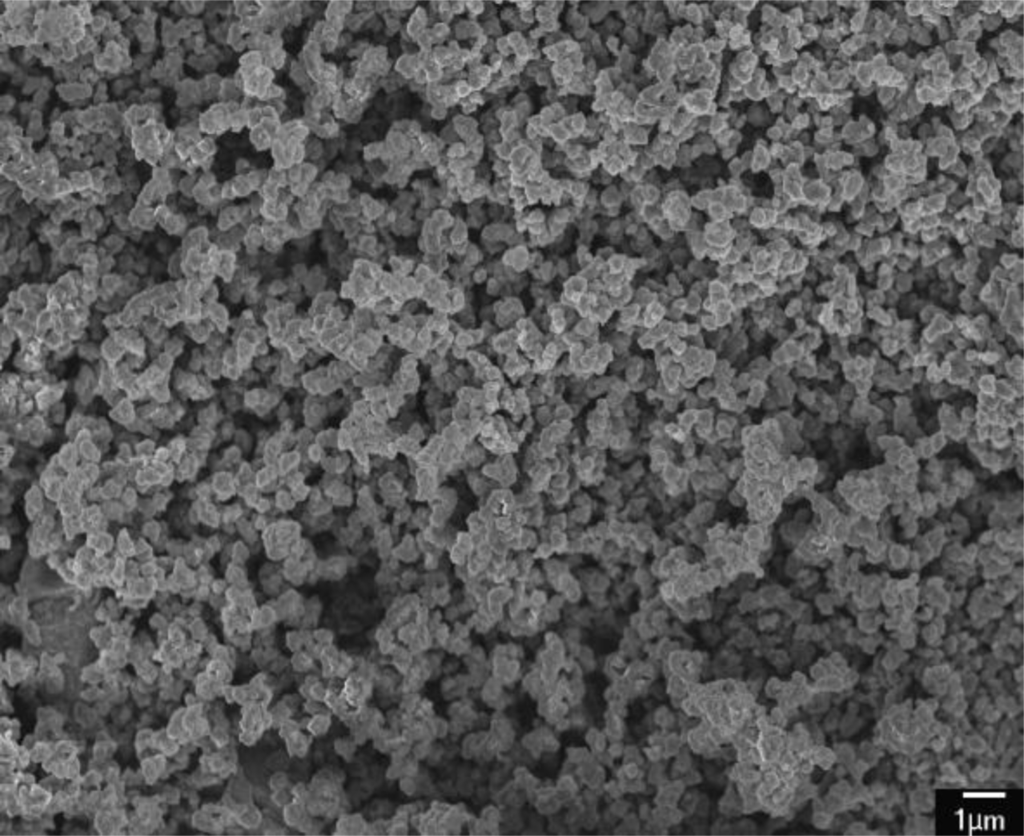 Figure 8 demonstrates a SEM image of the polypyrrole film that displays nanoparticle and porous structures. The nanostructures help to enhance the humidity sensitivity of the film. The diameter of grains in the polypyrrole film is about 0.3–0.5 μm, and the gap between the electrodes is 4 μm. Therefore, the polypyrrole film can fill into the gap between the electrodes.