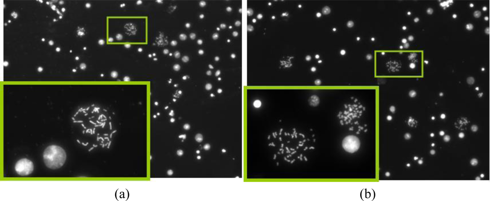 - Hliscs, R; Muhlig, P; Claussen, U. The Spreading of Metaphases Is a Slow Process which Leads to a Stretching of Chromosomes. Cytogenet. Cell Genet 1997, 76, 167–171. [Google Scholar]