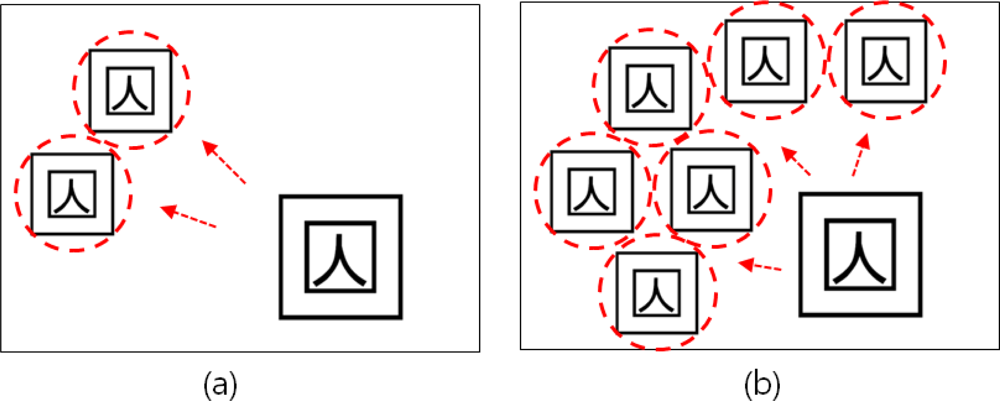 In case two markers are copied after the area created is designated as non-overlapping area, the applicable area is not interfered as in Figure 10(a). Besides, if more than two markers are to be copied, as the number of markers printed in one screen is automatically limited, the markers overlapping problem can be solved and the number of copying operations can be regulated according to the scale of the marker.