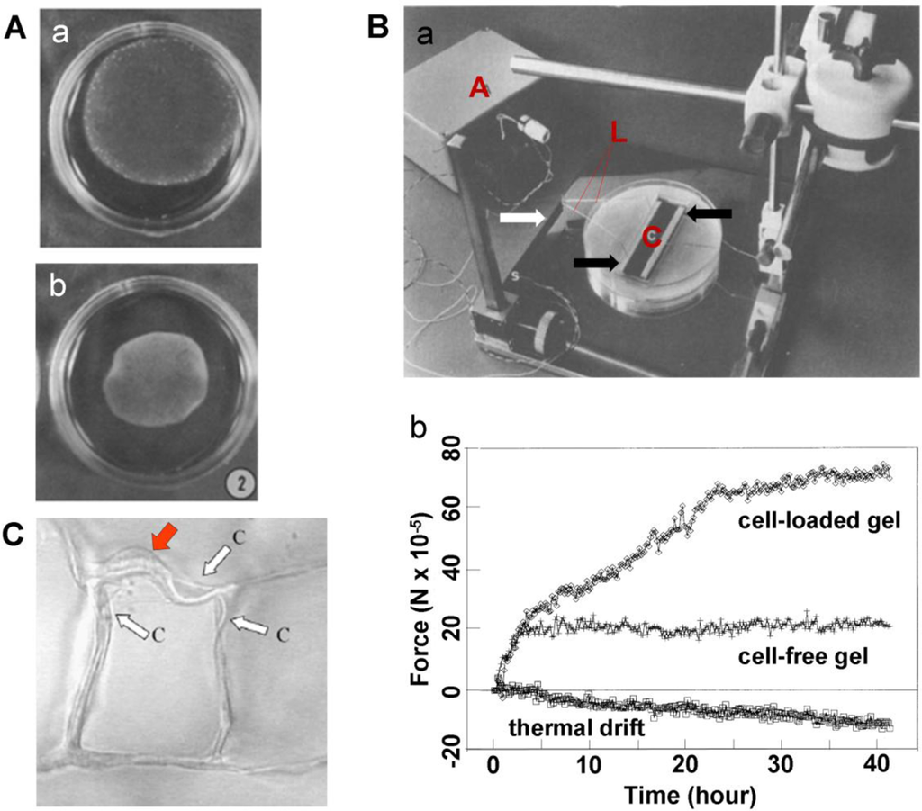 To date, a variety of techniques have been developed for measuring CTFs qualitatively or quantitatively. Such measurement methods can be divided into two categories: techniques for sensing the forces of a cell population and those for single cells. To measure the CTFs of a cell population, collagen-based gels with embedded cells are typically used. The gel shrinks as a result of the collective effect of cellular traction from the cell population, and the extent of such shrinkage represents the CTFs from the cell population. On the other hand, CTFs of individual cells can be detected using microscopy-based techniques, which mainly involve the use of deformable thin membranes, microfabricated structures, and hydrogels.