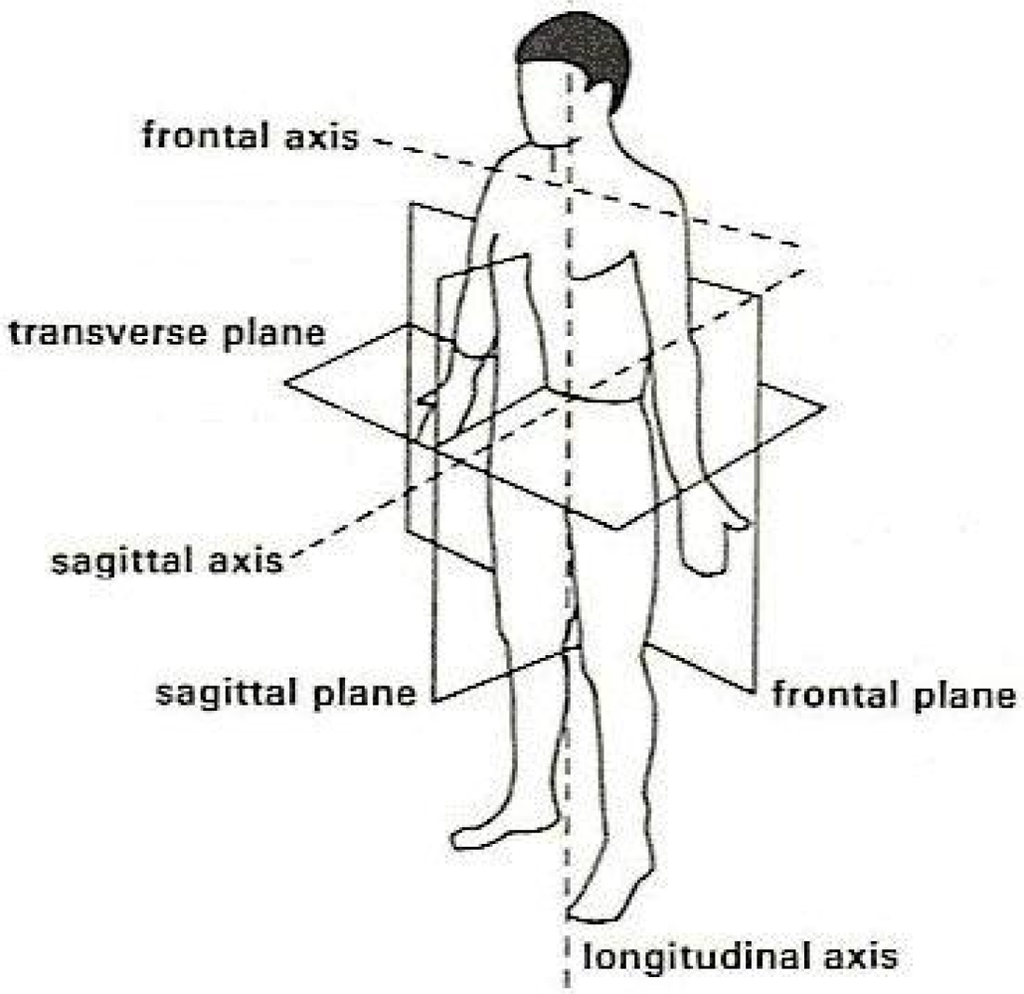 Three main types of deviation may occur when attaching the goniometer endblocks to the subject’s knee: (A) around the longitudinal axis, applying a rotation between the endblocks in the transverse plane; (B) around the sagittal axis, moving the two endblocks in the frontal plane, due to valgus or varus posture; and (C) around the frontal axis, moving the endblocks in the sagittal plane. Body planes and axis are presented in Figure 1 and its application for knee misalignments are shown in Figure 2.