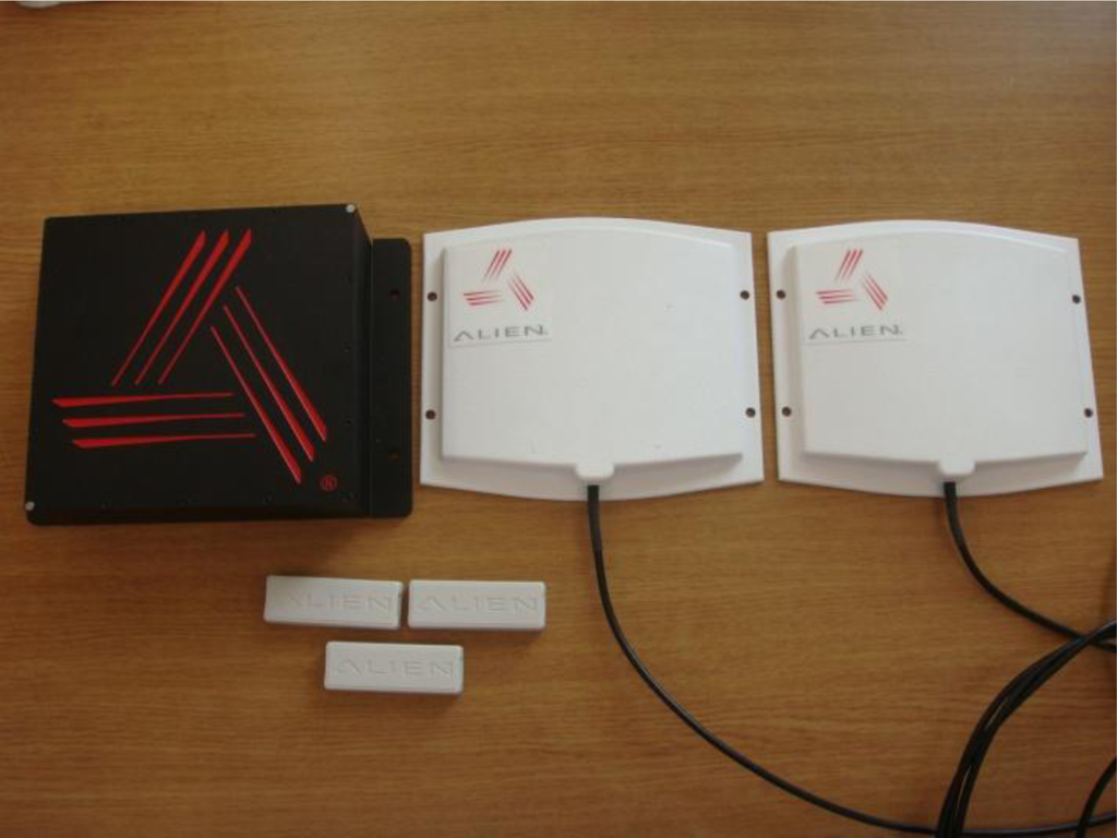 RFID consists in general of a tag which keep information about the identification, individual characteristics, and growth of the pig and an RFID reader which collects the information of the tag or revises information when it changes. Users can monitor a pig’s history through the RFID. The Alien 2850 BAP Dev Kit was used to monitor pigs’ histories and the RFID used in the proposed ubiquitous hog farm system and its specifications are shown in Figure 12 and Table 3.