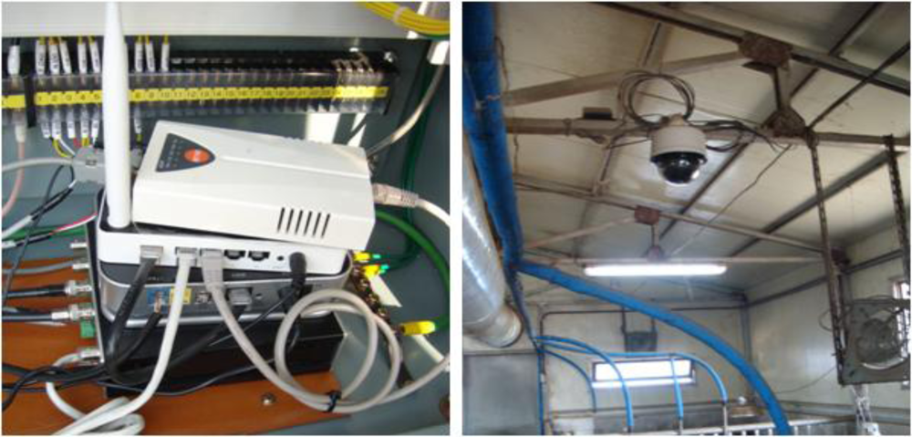 Surveillance cameras were installed to monitor image information inside and outside the hog farm for 24 hours (Figure 13). These cameras, with their 24 hours recording function, shall be used for finding causes when events like a theft or accident occurs or are used for checking the status of the hog farm and animals in real time. Images taken shall be transmitted to the ML and stored into the database after being classified according to the hog farm ID and camera number, etc.