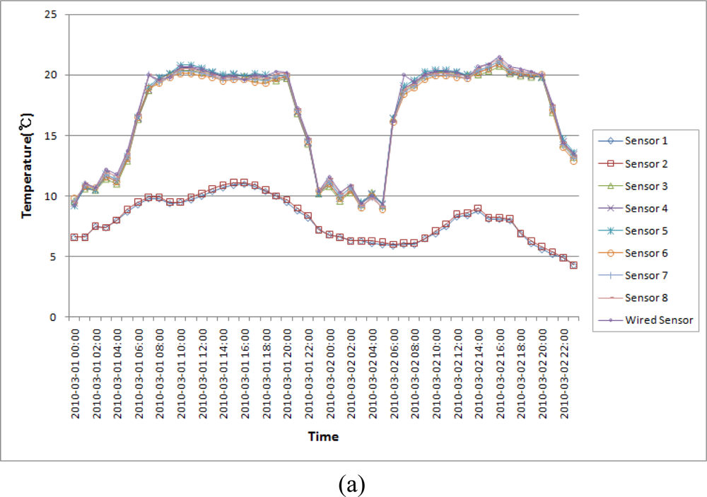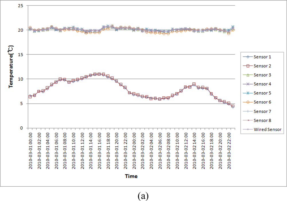 At the same time, ventilation and heating must be minimized in order to save energy while keeping temperatures at an adequate level. Cugnasca et al. evaluated the capability and usefulness of a WSN applied to monitoring environmental variables in an animal housing facility. The nodes were moved through the facility to determine different profiles of temperature, humidity and luminosity [18]. Darr and Zhao developed a wireless data acquisition system for monitoring temperature variations in swine barns [19].