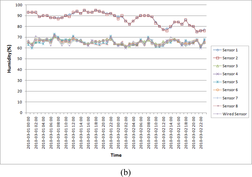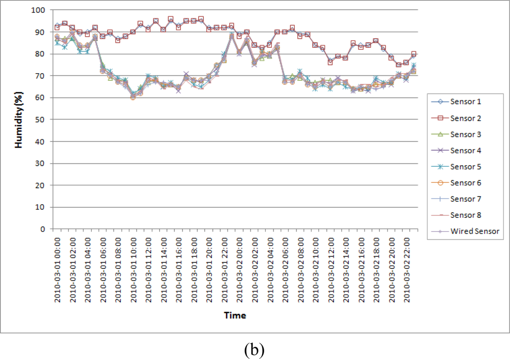Besides, since the implemented environment sensors of the hog farm may provide wrong information about the hog farm, we compared it to the environment information values obtained from wired sensors which were installed in the hog farm. As a result of measuring the hog farms, we could recognize that temperature and humidity data collected from WSN environmental sensors and that from wired sensors were nearly identical to each other and, we could see that the sensor nodes realized widely to apply the sensor network did work without any problems.