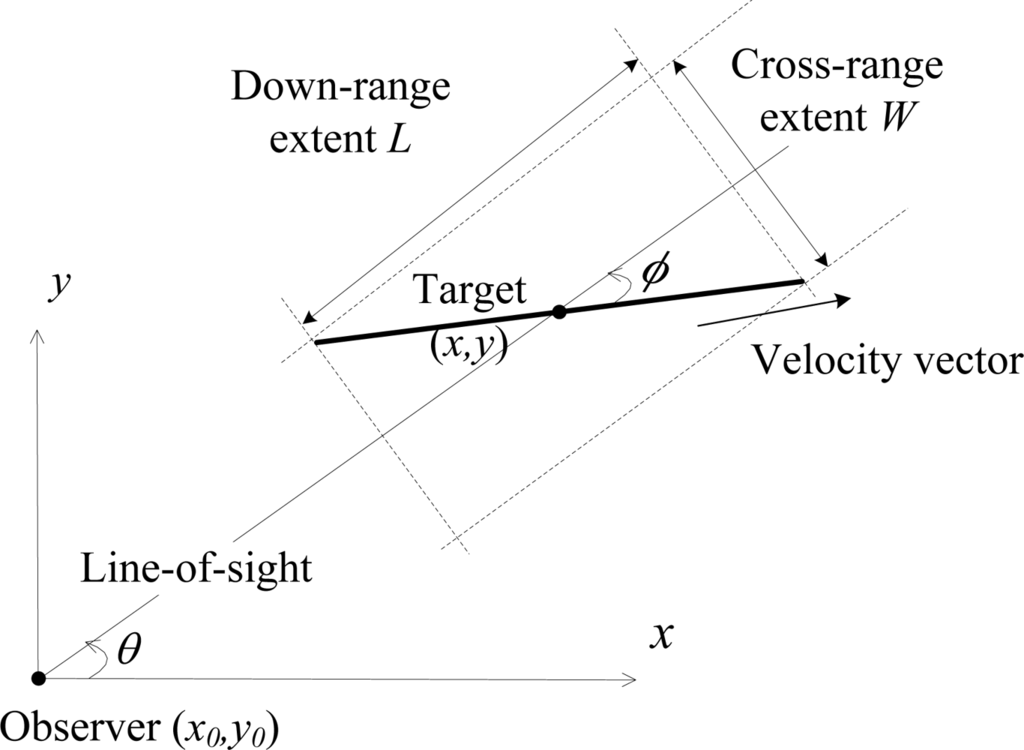 The sensor obtains not only the conventional target position measurements, such as the distance and azimuth angle of the target centroid, but also the extended measurements that describe the target extent. The measurement model is: