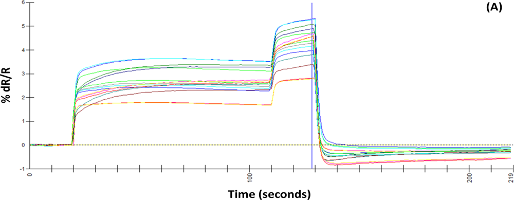 A typical sensors output signal from the quartz microbalance transducer of the LibraNose 2.1 e-nose is presented in Figure 2. The output sensor signals are for volatiles from a Ganoderma lucidum-decayed wood sample of Celtis australis one year after artificial inoculation. Three replication analyses were done on the same sample during the run. It is very clear how the sensors-odor vapor bonds are completely reversible as indicated by the base frequency oscillation when it returns to zero. When the headspace volatiles adsorbed to the polypyrrole polymers or metalloporphyrines in the sensor array, the quartz system detected that the crystals were heavier and thus oscillated more slowly. Changes in the frequency of quartz crystal oscillation (Δf) provide the means for detecting differences in component headspace volatile mixtures present in the analyte sample. The oscillation frequency of the quartz crystals change (undergo a frequency shift) when VOC compounds adsorb to the sensor surface resulting in a change in weight on the crystals which modulates vibration frequency that is detected by the transducer and recorded on the sensor-array output.