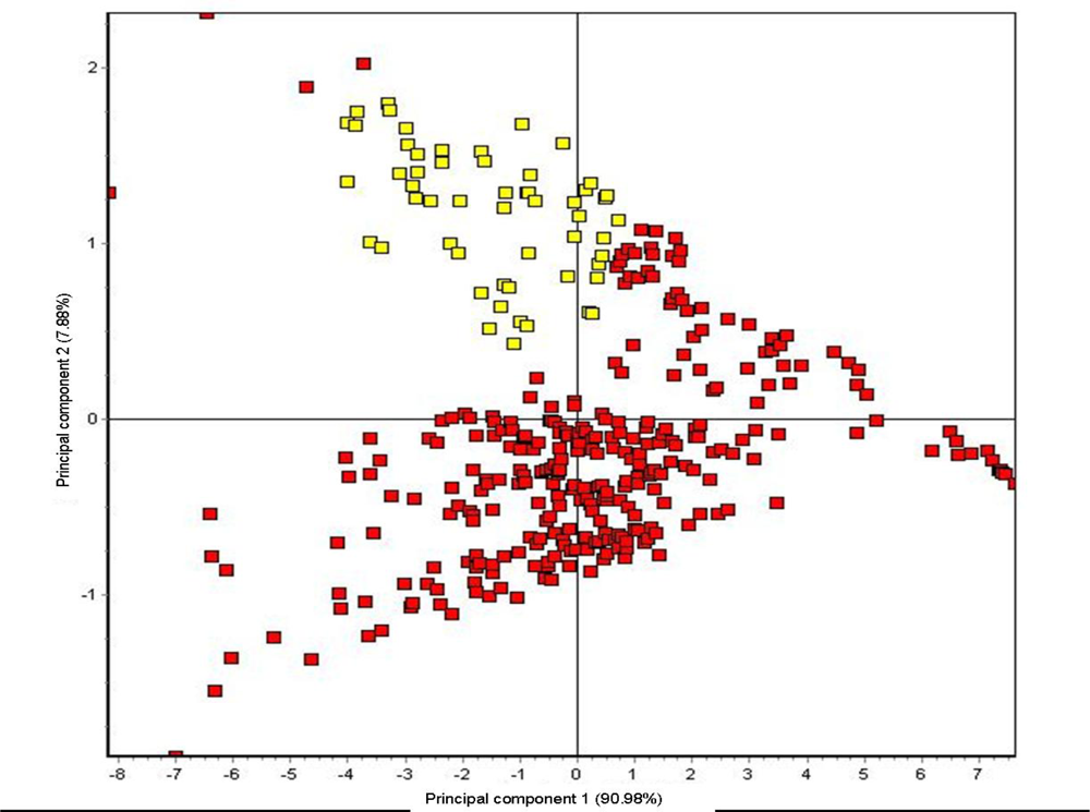 All samples were analyzed at least two times and the mean values between averaged sensor values were used for statistical analysis, as well as the peak value of all sensors. Principal component analysis (PCA) and linear discriminant analysis (LDA) were performed by Winmuster software to discriminate between the different classes of samples. PCA allowed the extraction of useful information from the data and to explore their structure (including correlation between variables and the relationship between the subjects), whereas LDA maximized the variance between the sample categories (aroma classes) and minimized the variance within the same category or class [19]. Reference libraries were not used for sample recognition and data analyses with the PEN3 e-nose analyses.