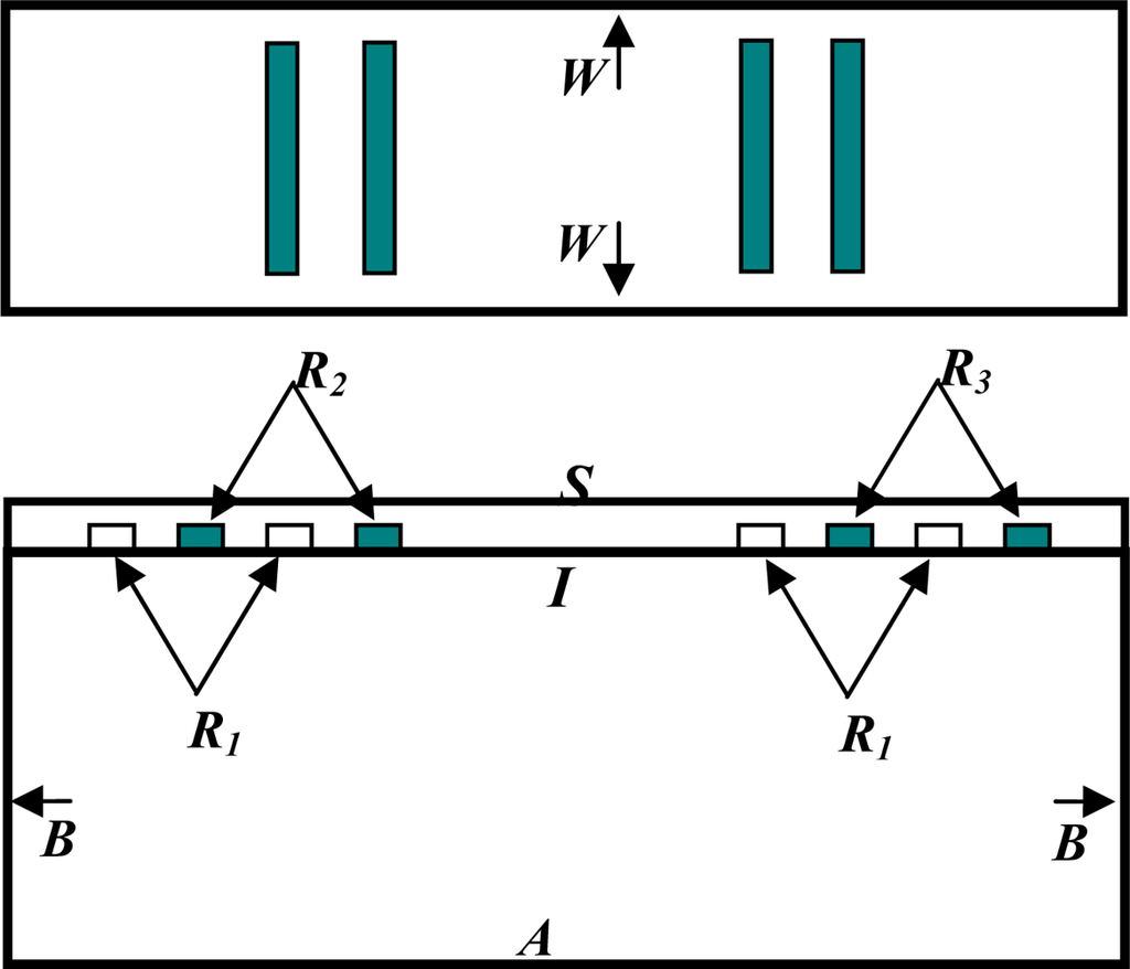 These are finger-like electrodes patterned on the surface of a piezoelectric substrate using lithographic techniques, as illustrated in Figure 1. They are used for launching and detecting acoustic waves on the surface of piezoelectric crystals. By applying a time varying voltage signal across the electrodes a mechanical wave is generated that propagates along the surface due to the converse piezoelectric effect. As the wave reaches the output IDT it is converted to a voltage signal due to the direct piezoelectric effect. Datta [] provides detailed discussion on the operating principles of the different configurations of SAW-IDT devices, including the delay line structure.
