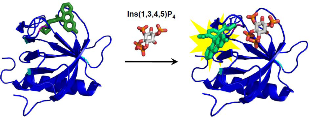 - Sakaguchi, R.; Tainaka, K.; Shimada, N.; Nakano, S.; Inoue, M.; Kiyonaka, S.; Mori, Y.; Morii, T. An in vivo Fluorescent Sensor Reveals Intracellular Ins(1,3,4,5)P4 Dynamics in Single Cells. Angew. Chem. Int. Ed 2009, 48. in press. [Google Scholar]