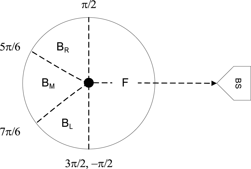 Direction: The first notion used in our algorithms is that of direction. The physical location of the base station is the reference point for each sensor node. Based on this reference point, each node classifies its neighboring nodes into four categories: (1) forward neighboring nodes (F), (2) right side backward neighboring nodes (Br), (3) left side backward neighboring nodes (Bl), and (4) middle backward neighboring nodes (Bm). The objective of this categorization is to provide more path diversity as discussed in Section 4.2. A node x classifies its neighboring node y in following fashion: