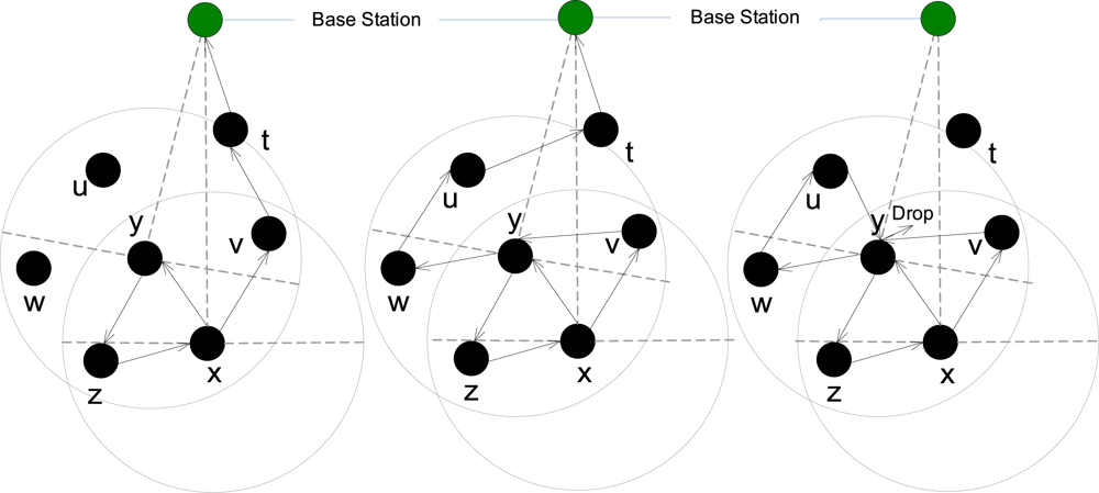Additionally, cycle prevention strategy (Section 4.2) requires some short term memory to store signature of the packet for short period of time (δt). In our proposed schemes, signature of the packet comprises of six fields: 1) Sequence number (2 bytes), 2) previous hop identity (2 bytes), 3) next hop identity (2 bytes), 4) payload (variable size), 5) counter (2 bits), and 6) δt time (4 bytes). So, for each packet sensor node requires 10.25 + Size (payload) bytes of memory. The packet signature will be removed from the buffer after δt time. For example, sensor node x received 20 packets of equal size of payload (e.g., 10 bytes). Then, the total memory required by the sensor node is 20 × (10.25+ 10) = 405 bytes. This additional overhead does not make sensor nodes overloaded because of following reasons: