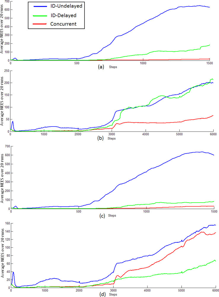 Comparison of the average NEES for ID-Undelayed, ID-Delayed and Concurrent methods.