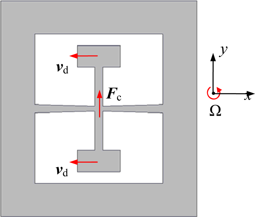 - In order to increase the sensitivity of the gyroscope, a pair of proof masses is introduced and a tapered sense beam has been designed.