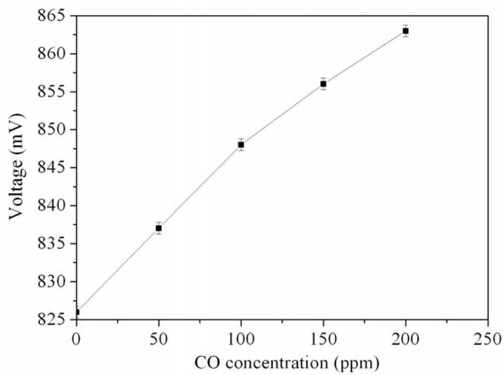 Measured results of the output voltage for the CO sensors.