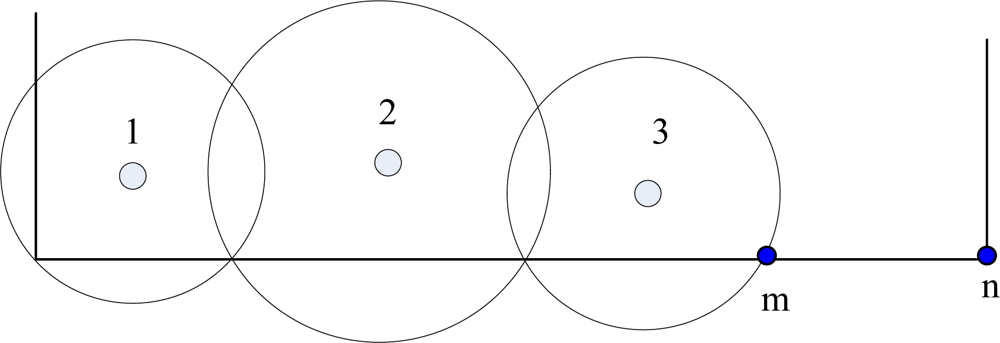 Assume deployment of M sink nodes in an X × Y region of space, denoted as Si, and the location be set as (xi,yi), i ∈ M. Let Z(x,y) be the rectangle area, where x is the length and y is the width. CS(xi,yi,ri) is the circle area, where the point (xi, yi) acts as the centre and ri is the radio radius. To ensure the network’s coverage rate up to 100%, the value ri, i∈ M, must satisfy the following condition: