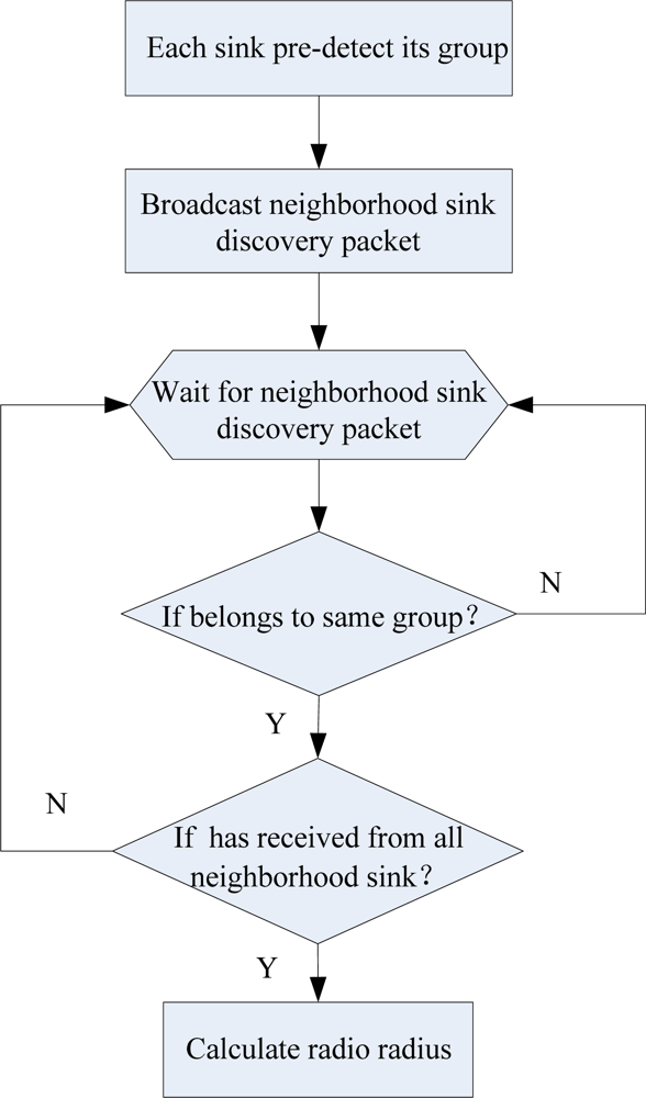 In order to obtain satisfactory network connectivity, sink nodes need to negotiate the broadcast radius. A sink node working outside its radio range employs an energy dissipation algorithm to adjust the actual broadcast range.