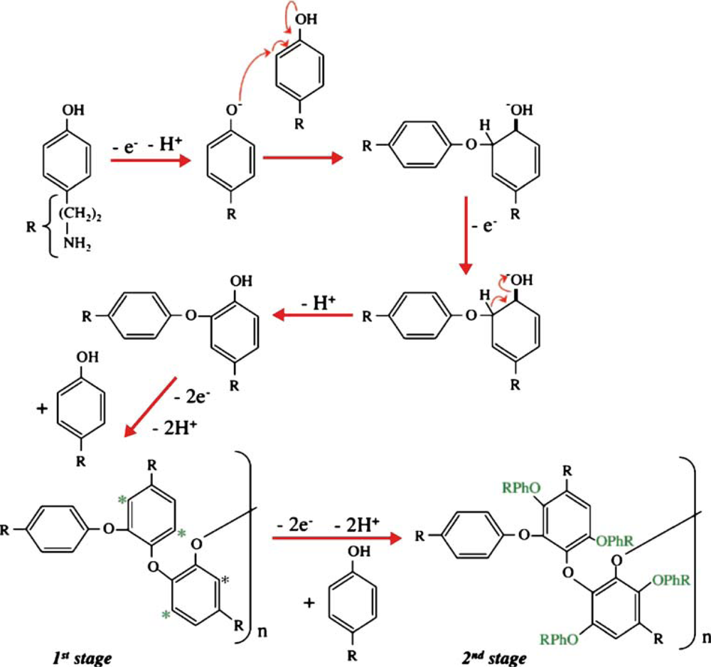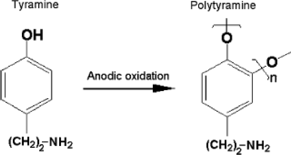 - Tenreiro, A.M.; Nabais, C.; Correia, J.P.; Fernandez, F.M.S.S.; Romero, J.R.; Abrantes, L.M. Progress in the understanding of tyramine electropolymerisation mechanism. J. Solid State Electrochem 2007, 11, 1059–1069. [Google Scholar]