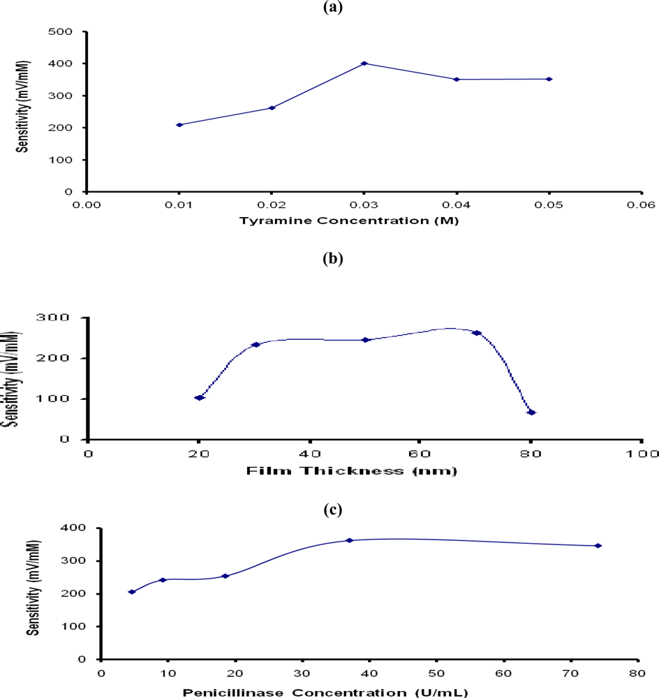 3.2.1. Influence of Tyramine and Penicillinase Concentrations