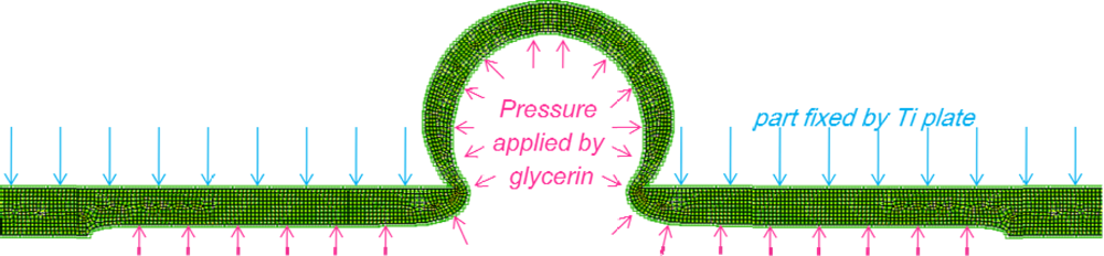 Deformed state of top PDMS membrane obtained by FEM simulation.