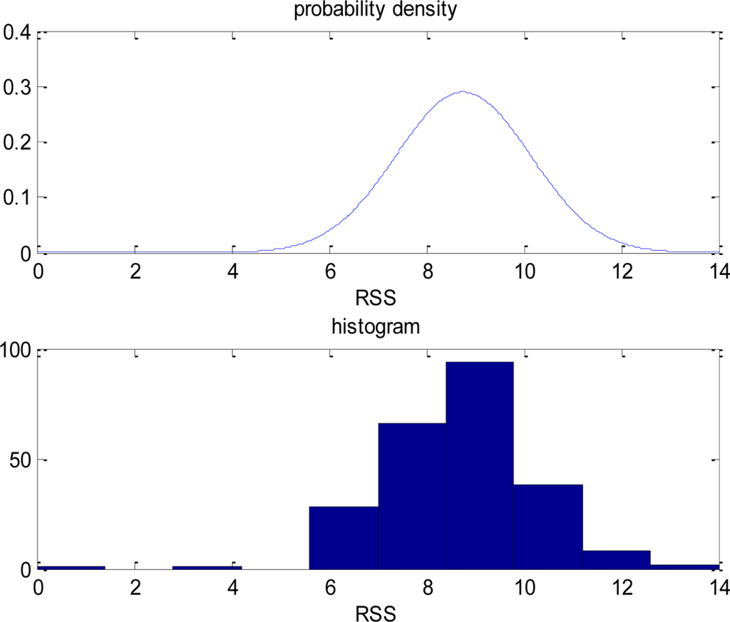 is the variance of the rss. If there are M transmitters, the probability density functions of RSS values from these transmitters can be obtained accordingly. After computing these probability density functions, we could multiply these probability density functions to obtain the likelihood function, as shown in Equation (5):