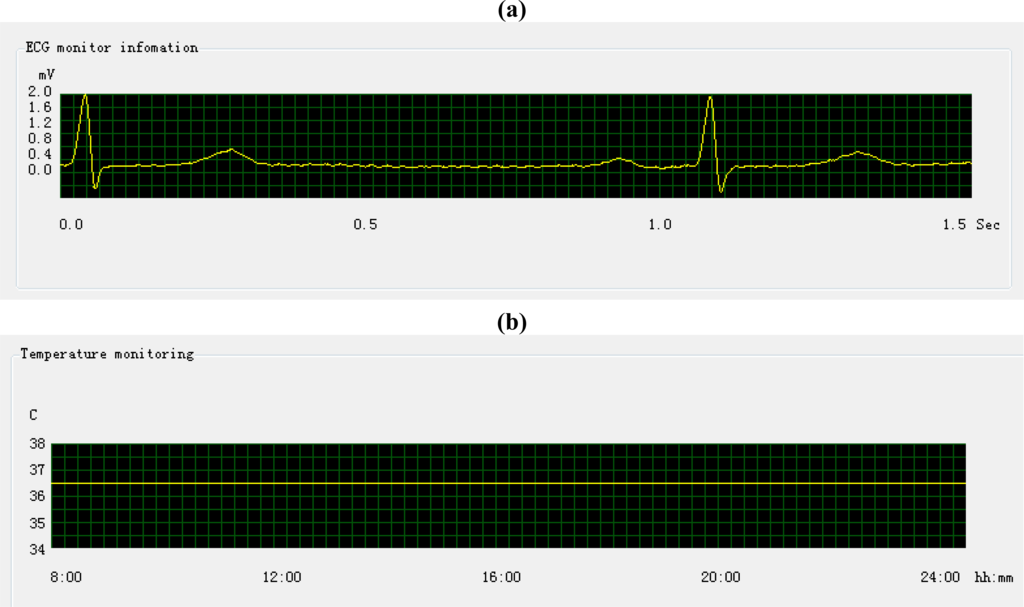 The ECG and temperature monitoring. (a) The ECG monitoring graph; (b) The temperature monitoring graph.