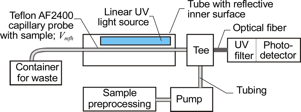 - Li, J.; Dasgupta, P.K.; Genfa, Z. Transversely Illuminated Liquid Core Waveguide Based Fluorescence Detection Fluorometric Flow Injection Determination of Aqueous Ammonium/Ammonia. Talanta 1999, 50, 617–623. [Google Scholar]