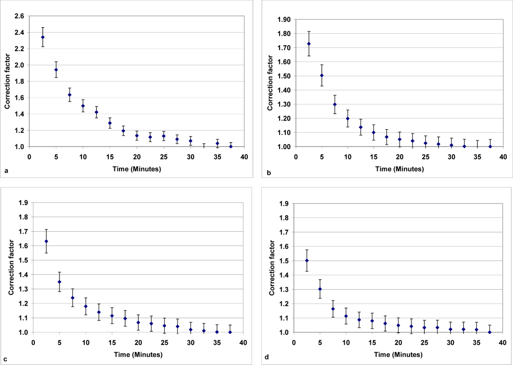 - It is recommended to plan the measuring strategy to allow a minimum of 12.5 to 25 minutes on each position. Even in this case a correction factor may be needed in order to obtain reliable results for further calculations.