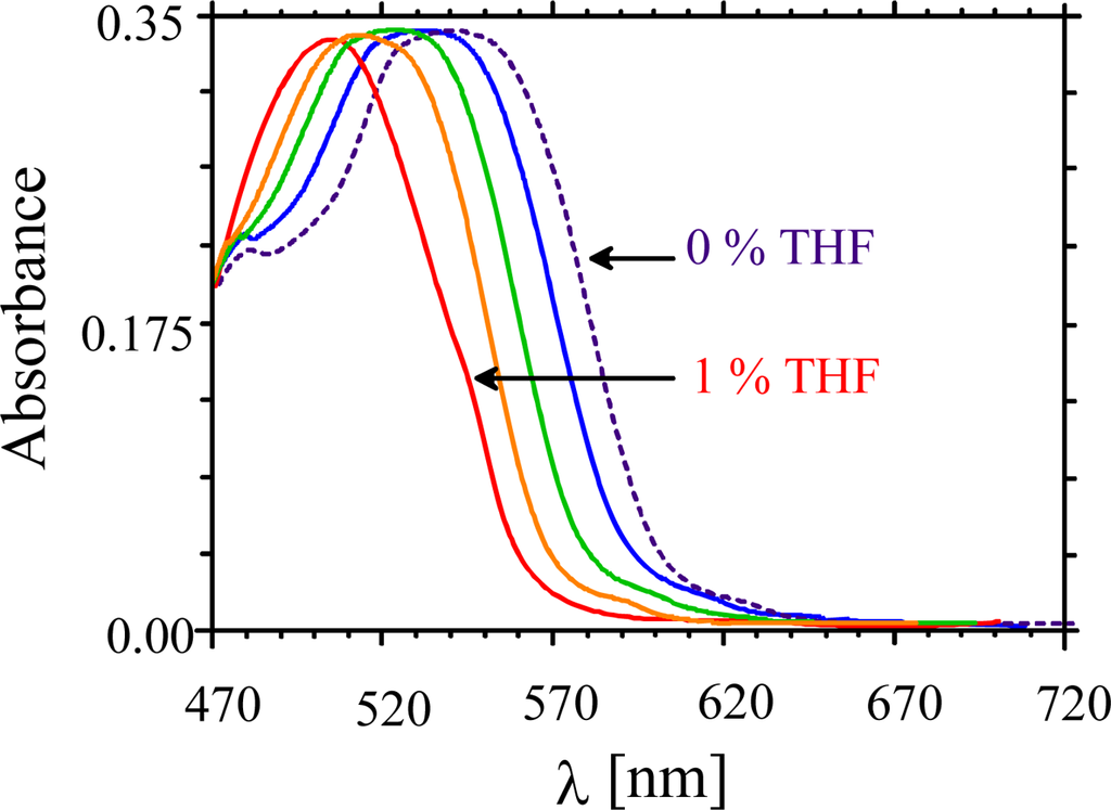 The temperature effect on LC-phases can be further separated from solvent interactions by multiple wavelength and band-shape analysis as investigated with a mixture of cholesteryl esters as sensitive material [20].
