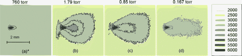 - Glumac, N.; Elliott, G. The effect of ambient pressure on laser-induced plasmas in air. Opt. Lasers Eng 2007, 45, 27–35. [Google Scholar]