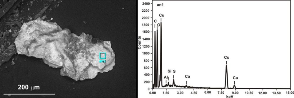 | wt.% | C | O | Al | Si | P | S | Cl | Ca | Fe | Cu |