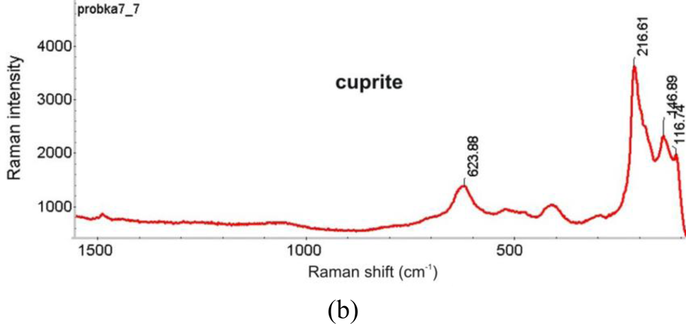 - Hayez, V.; Guillaume, J.; Hubin, A.; Terryn, H. Micro-Raman spectroscopy for the study of corrosion products on copper alloys: setting up of a reference database and studying works of art. J. Raman Spectrosc 2004, 35, 732–738. [Google Scholar]