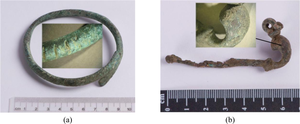 ![]() | Fibula made from leaded tin bronze: Cu 77.4; Sn 21.5; Pb 1.1 |