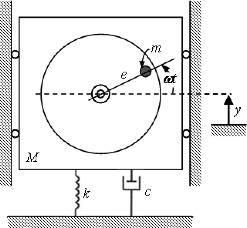 If y is the displacement of the non-rotational mass (M − m) from the equilibrium position and the displacement ym of the unbalanced mass m is determined as: